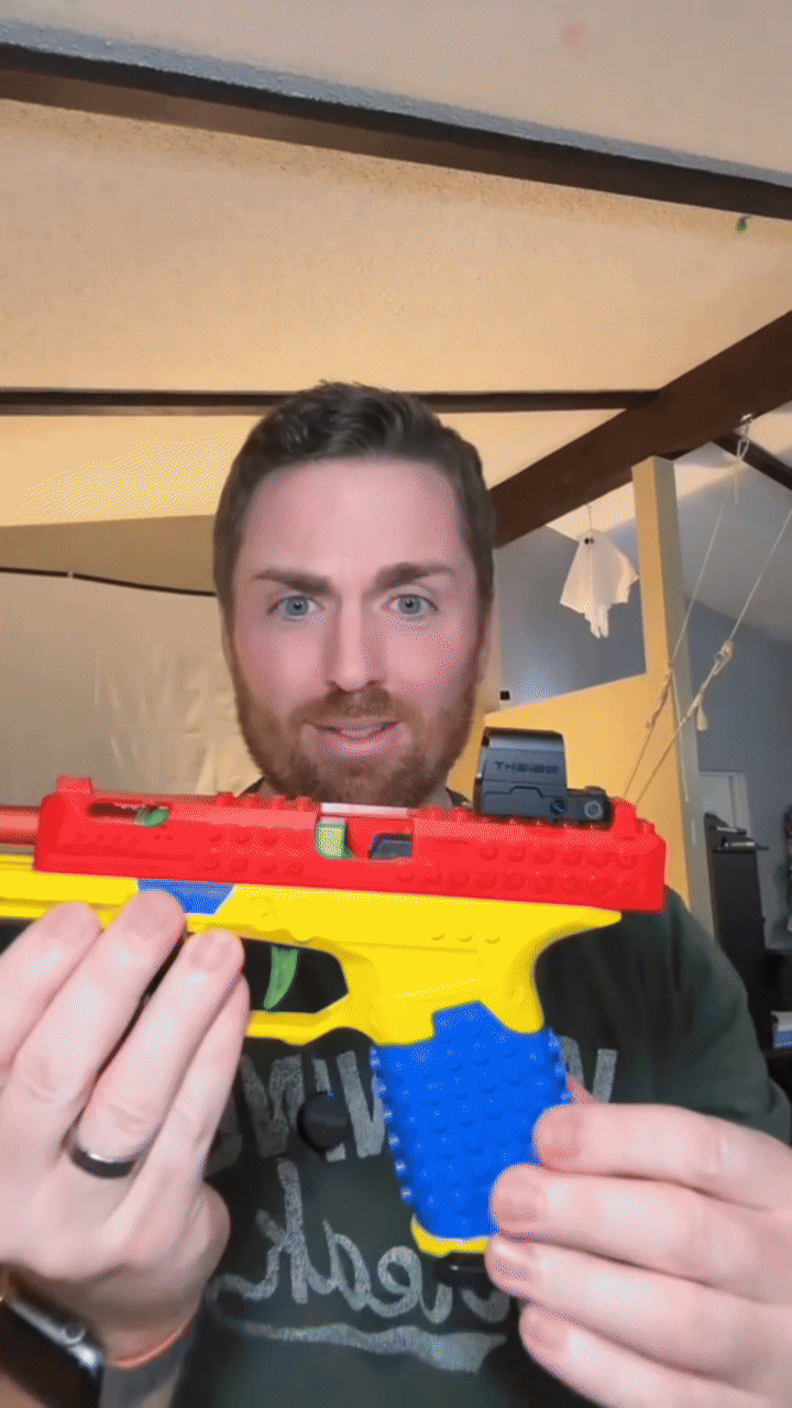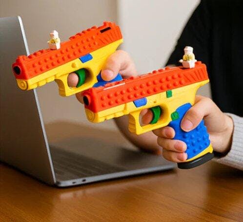 Il ne tire pas de vrais projectiles. C'est un jouet sûr doté d'un mécanisme à clic amusant et d'une conception en blocs — plus destiné au jeu et à la décoration qu'au tir.
